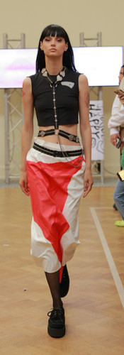 Held in Camden's industrial area, MARRKNULL's SS24 collection themed 'Get Off Work' revolved around freedom from workplace confines. The designs featured a mix of street-wear elements, notably denim in various forms. Accessories, especially the denim and leather handbags and a range of footwear in collaboration with DAPHNE.LAB, tied the collection together.