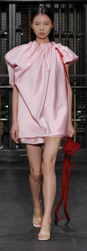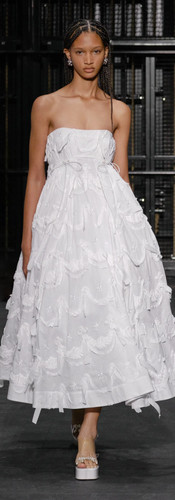 MITHRIDATE MITHRIDATE’s collection celebrated East Asian culture and was displayed at St Cyprian’s Church. Garments ranged from lightweight layered dresses to denim outfits, all unified with pastel handbags and light jade accessories. Sustainability was a highlight, with the materials predominantly being organic silk, cotton, and linen.