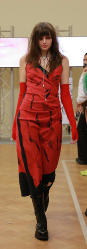 DREAMING ELI’s SS24 collection was revealed in London’s Charterhouse complex, emphasizing female emancipation from patriarchal oppression. Elisa Trombatore, the brand's creator, envisions the DREAMING ELI woman as a Victorian vampire. The collection transitioned from soft hues to intense blood reds, culminating in a standout white satin dress reminiscent of a wedding gown.